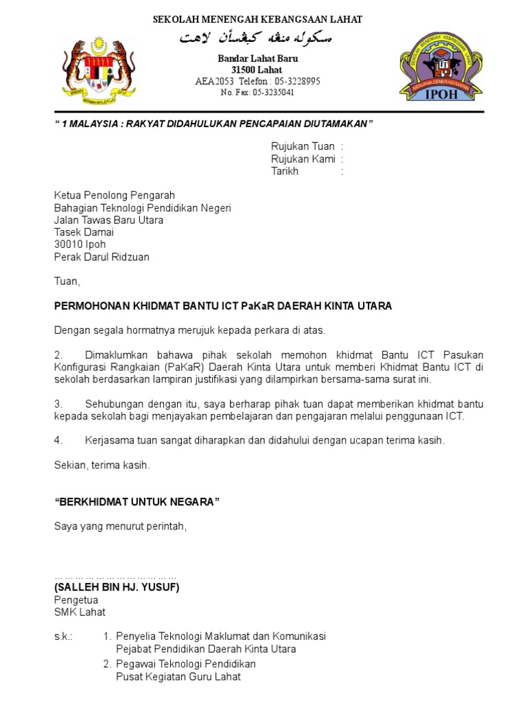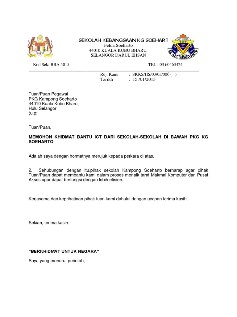 Contoh Surat Memohon Khidmat Bantu Sekolah
